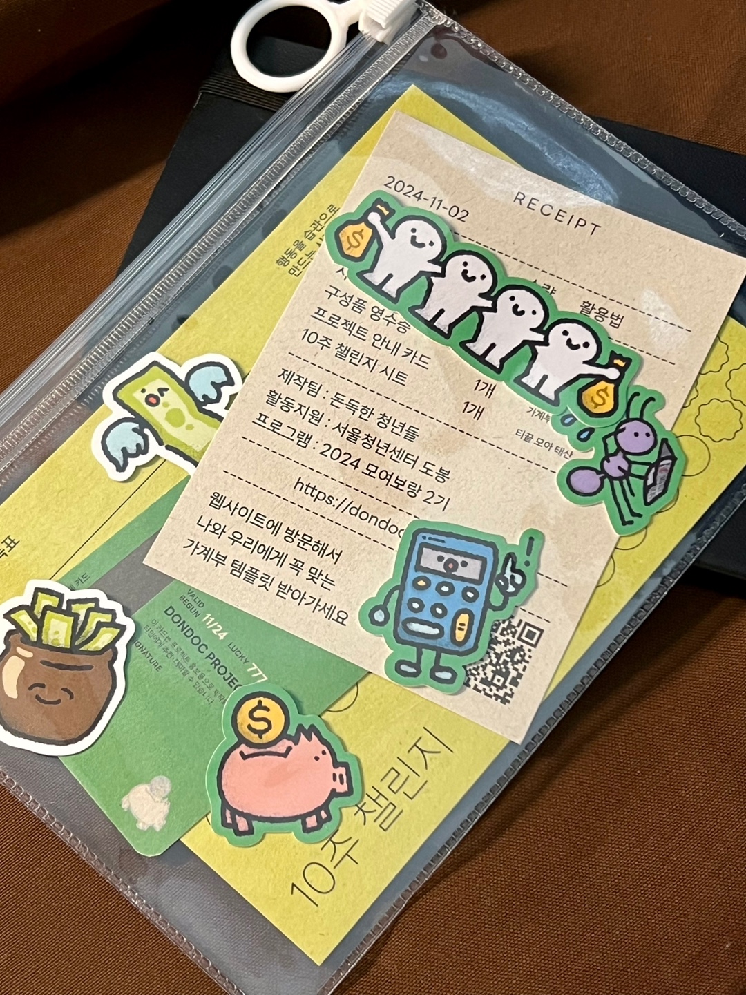 - 최종 결과물로는, 구글 시트 문서로 제공하는 가계부 템플릿과, 오프라인에서 받아갈 수 있는 굿즈 두 가지를 완성했다.