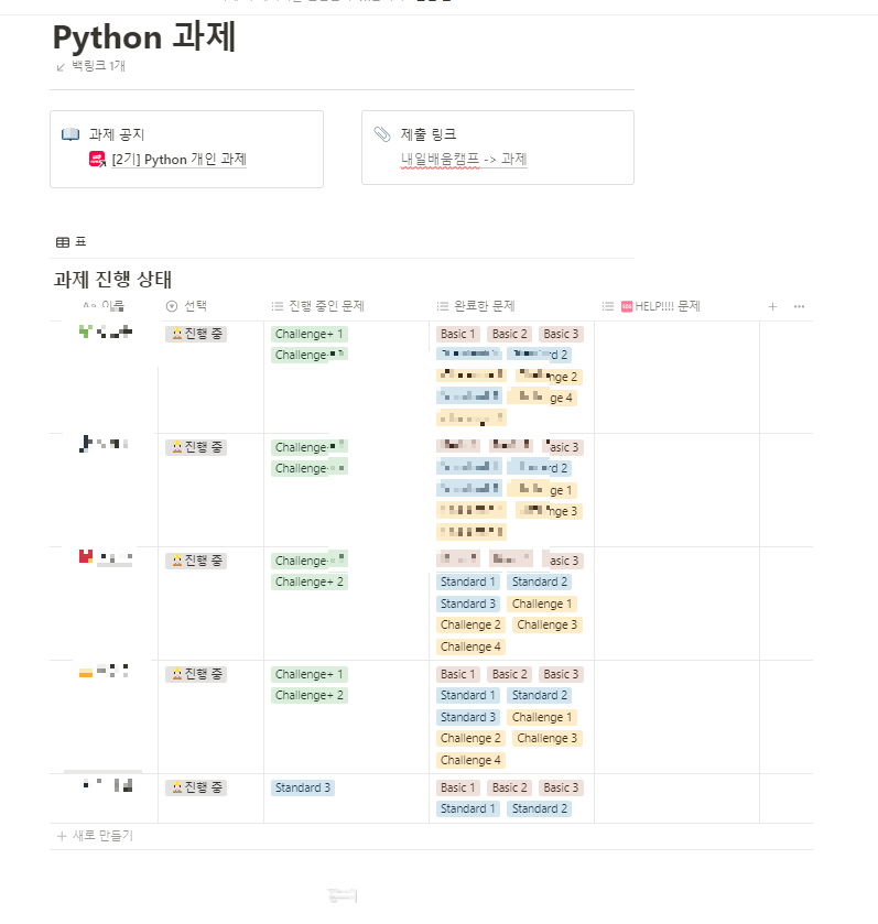 | Lacked (부족했던 점) | - 강의와 과제 설계에 대한 방향성… - 수강생 평균 학습 진행도에 대한 이해도..? |