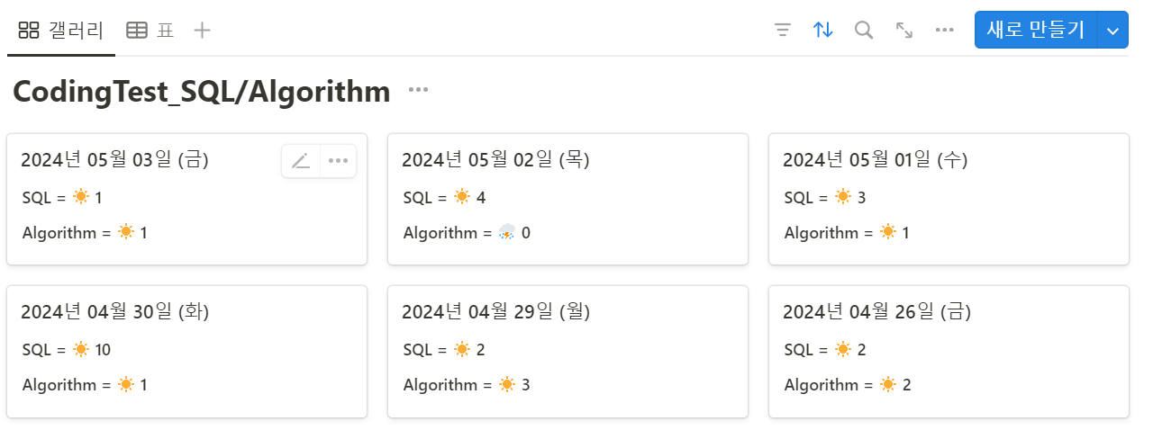 → 총 6개 해결, 1개 미해결 상태 - SQL 코딩테스트 매일 1개 이상 풀기