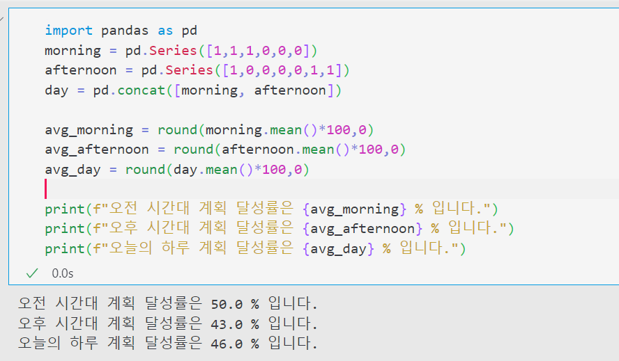 print(f"오전 시간대 계획 달성률은 {avg_morning} % 입니다.")