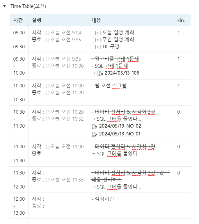 이 점에서 착안해 매일 작성하고 있는 시간대 별 계획 테이블에 계획 완료 여부를 표시하는 컬럼을 추가했다.